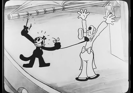 The captain starts chasing Krazy, but he slips on a soap bar and get airborne. Very quickly, the other seamen rats come in and cushion his fall putting their tails together. Then, the seamen rats make the captain bounce on their tails, like a trampoline, and, unintentionally, hurl the captain off the ship’s side. Remembering how unpleasantly ill-tempered their leader is, however, they and Krazy begin to celebrate the deed with some music and dancing.