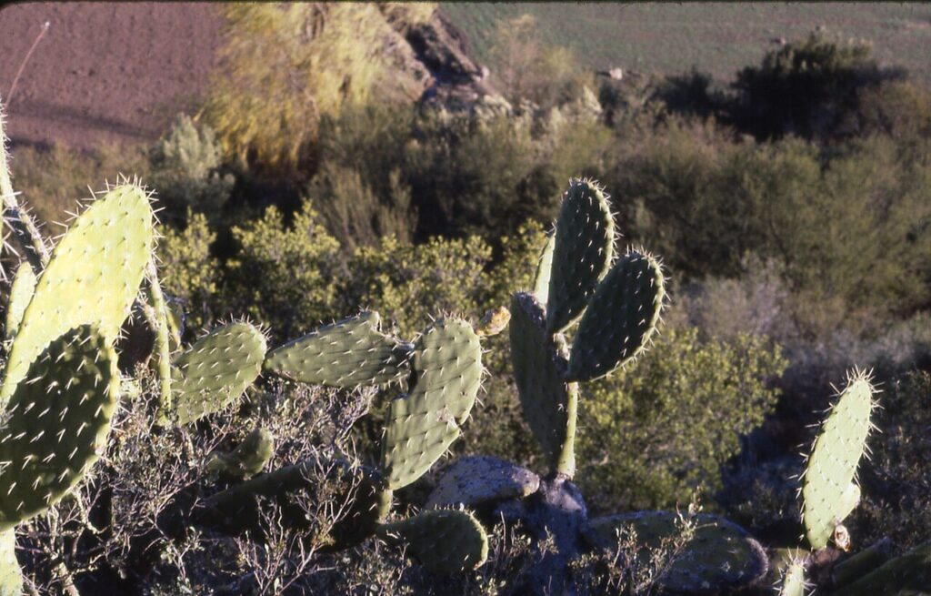 [[File:Outside Boomplaas Cave, South Africa (685392650).jpg|thumb|A photograph of [[Opuntia|prickly pears]], taken in [[Boomplaas Cave]], South Africa.]]