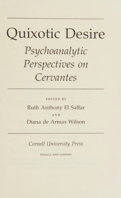 Quixotic Desire: Psychoanalytic Perspectives on Cervantes is a 1993 volume edited by Ruth El Saffar and Diana de Armas Wilson. It examines the work of the Spanish writer Miguel de Cervantes (most notably Don Quixote) through psychoanalytic perspectives, include those by Sigmund Freud and Jacques Lacan. Within a few years of publication, it received praise for its potential to change Cervantine studies.