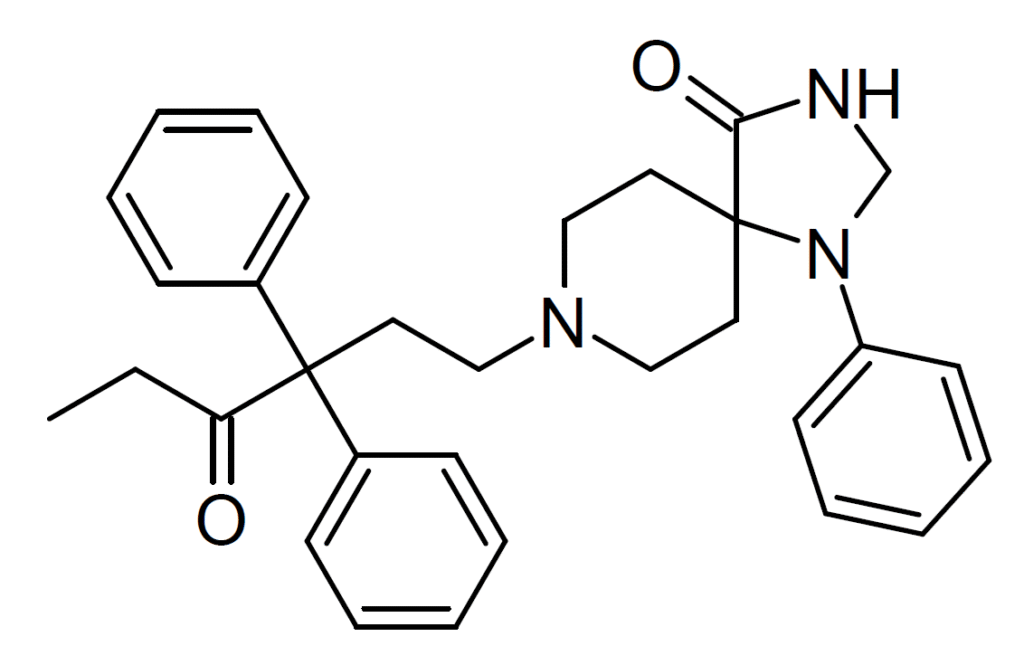 ”’R-5260”’ is an opioid drug from the [[orphine]] series, which is [[derivative (chemistry)|derivative]] of the [[opioid]] [[analgesic]] [[norpipanone]], but with the [[piperidine|piperidine ring]] fused with a [[spiro compound|spiro]] [[heterocycle]]. It was developed by [[Janssen Pharmaceutica]], and is a highly potent opioid around 10x the potency of [[fentanyl]]. It is related to other potent opioid derivatives such as [[dipipanone]], [[bezitramide]], [[R-4066]] and [[spirochlorphine]], and is also related to [[dopamine antagonist]] [[neuroleptic]] drugs such as [[spiperone]] and [[fluspirilene]], although R-5260 does not have any dopamine antagonist activity itself.<ref>{{cite journal | vauthors = Leysen J, Tollenaere JP, Koch MH, Laduron P | title = Differentiation of opiate and neuroleptic receptor binding in rat brain | journal = European Journal of Pharmacology | volume = 43 | issue = 3 | pages = 253–267 | date = June 1977 | pmid = 194781 | doi = 10.1016/0014-2999(77)90025-5 }}</ref><ref name=”Gorissen_1980″>{{cite journal | vauthors = Gorissen H, Ilien B, Aerts G, Laduron P | title = Differentiation of solubilized dopamine receptors from spirodecanone binding sites in rat striatum | journal = FEBS Letters | volume = 121 | issue = 1 | pages = 133–138 | date = November 1980 | pmid = 6161839 | doi = 10.1016/0014-5793(80)81282-8 | bibcode = 1980FEBSL.121..133G }}</ref>