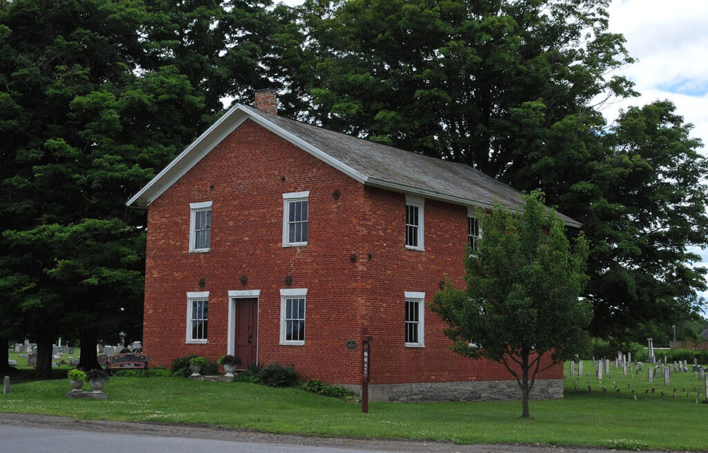 Red Brick Church is a historic Baptist church located at Sodus Center in Wayne County, New York. The former meeting house is a two-story, gable roofed rectangular brick building resting on a slightly raised fieldstone foundation. It was built in 1824–1826 to serve the areas first Baptist society and served as a house of worship until 1926. Also on the property is a burying ground with the earliest gravestone dating to 1809.[2]