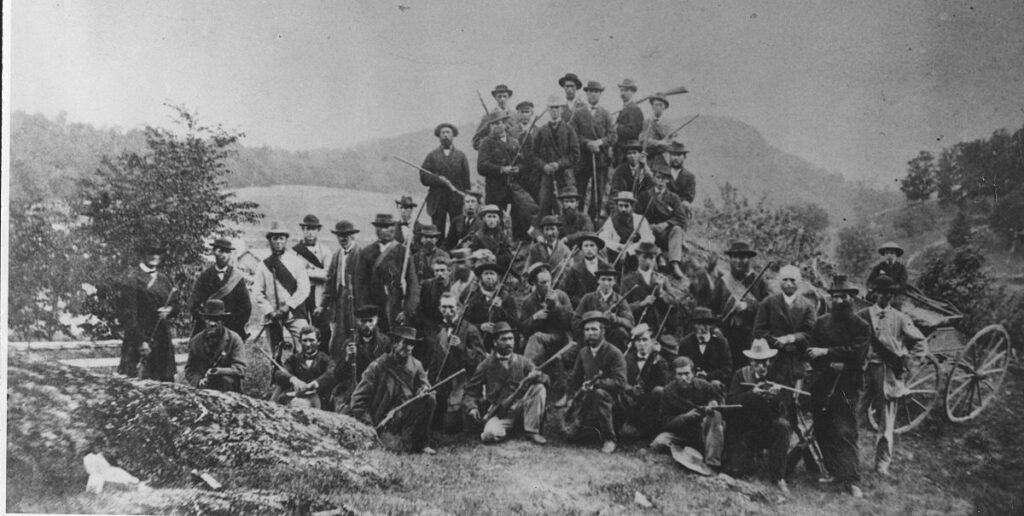 [[File:Eccles Hill, 1870, Border Volunteers with Fenian slaid.jpg|thumb|Border Volunteers ( officers and a corporal) stand over a Fenian slain during the Battle of Eccles Hill, 1870. Courtesy of the Missisquoi Historical Society Collections.]]