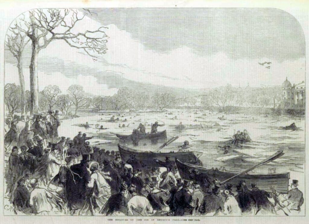 [[File:Harper’s weekly (1867) (14596167638) The disaster at Regent’s Park, rescuing the skaters from the broken ice (cropped).jpg|thumb|The disaster at Regent’s Park, rescuing the skaters from the broken ice; as seen in [[Harper’s Weekly]]]]