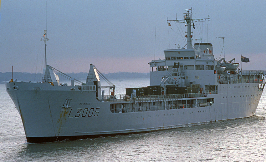 Sir Galahad was a 3,322-tonne LSL built by Stephens and launched in 1966. She could carry 340 troops or, when necessary, 534 for short periods. Cargo capacity could include 16 light tanks, 34 mixed vehicles, 122 tonnes of fuel and 31 tonnes of ammunition. Landing craft could be carried in place of lifeboats, but unloading was mainly handled by three onboard cranes.