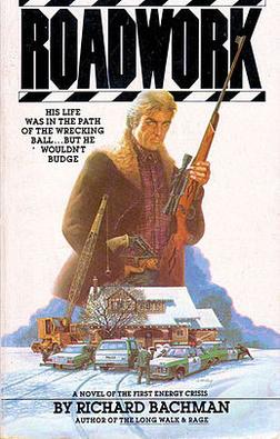 Roadwork is a thriller novel by American writer Stephen King, published in 1981 under the pseudonym Richard Bachman as a paperback original. It was collected in 1985 in the hardcover omnibus The Bachman Books.[1] The story takes place in an unnamed city of the Midwestern United States in 1972–1974. Grieving over the death of his son and the disintegration of his marriage, a man is driven to mental instability when he learns that both his home and his workplace will be demolished to make way for an extension to an interstate highway.