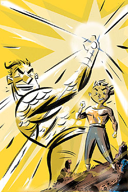 - Rocketo #11 (Image Comics – August 2006), “Illumination” (“Journey to the Hidden Seas” part 11): The battle for the city deep within the Hidden Sea has ended with Scarletto in full control. The Royal Navy of Lucerne has crossed the Hidden Sea and is now poised to find the flower of mankind. Rocketo Garrison, beaten and half dead, must find the power within himself to ignite that which was lost.