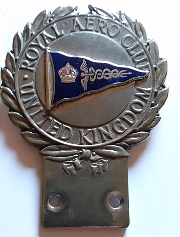 A car badge featuring the emblem of the Royal Aero Club (RAeC) United Kingdom.