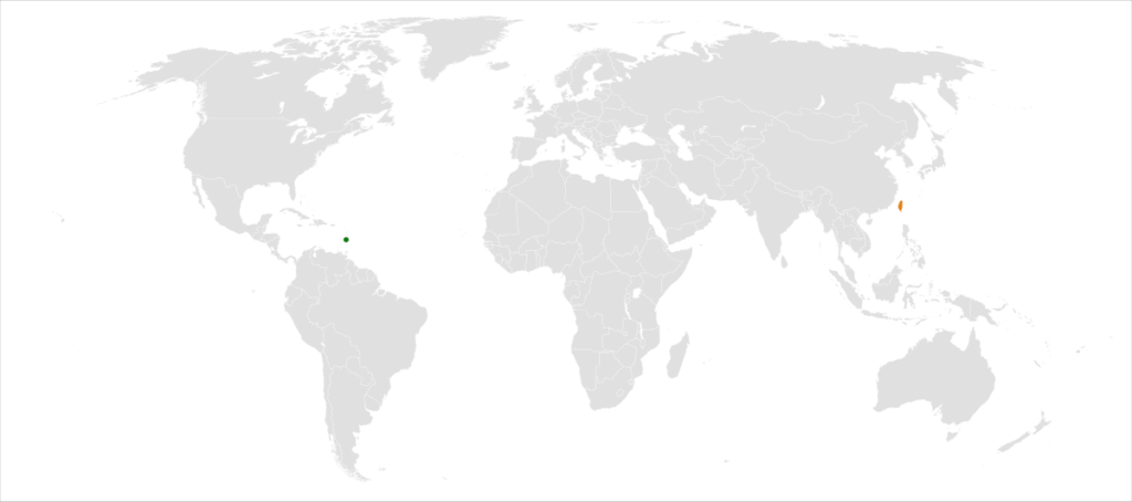 On 7 May, 1984, the Taiwanese government officially established diplomatic relations with Saint Lucia. A month later on 7 June, Taiwan established an embassy at the St. Lucian capital of Castries. On 29 August, 1997, Saint Lucia established relations with the People’s Republic of China, and the Taiwanese government cut ties with St. Lucia shortly afterwards.
