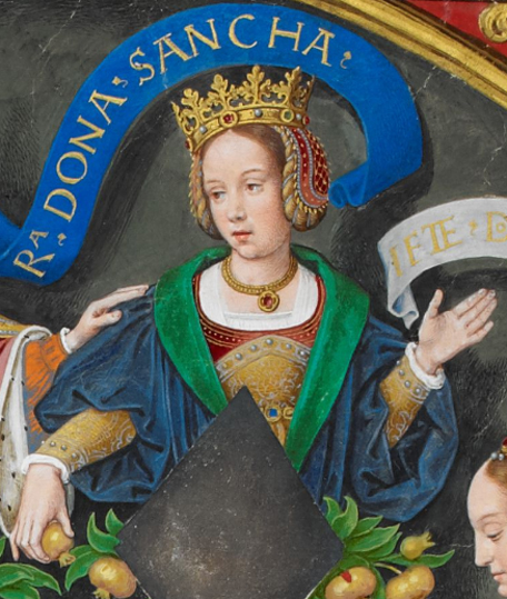 Sancha is mentioned in ballads about Fernán González such as the Poema de Fernán González. She is depicted as a loyal wife who intervenes to rescue him from his imprisonments.[7][8] The ‘Doña Sancha’ of the poem is a conflation of Fernán’s two wives (she died before his second imprisonment).[9]