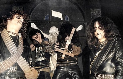 Rotting differed from the raw, hyper-speed black metal of I.N.R.I. Session drummer “Joker” brought different influences to the band, such as crossover thrash. Wagner learned to play guitar and contributed many of the guitar riffs.[17] Rotting marked their first change of aliases: the group’s core duo renamed themselves “Wagner Antichrist” and “Gerald Incubus”. They also dropped the arm and leg spikes because they made playing live difficult.[18]