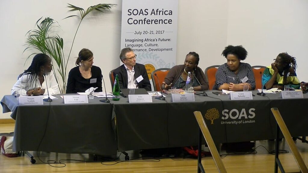 Conferences are an important way for scholars to discuss ideas. In this photo, panelists discuss science fiction at the SOAS Africa Conference in 2017, which had the tagline “New visions, new images, new stories.”