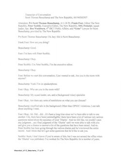 On October 24, 2007, the Drudge Report website published the transcript of a phone call that occurred on September 7, 2007, between Beauchamp and senior TNR staff, including Franklin Foer. In this conversation, Beauchamp refused to affirm the accuracy of his reports, despite pressure from Foer to do so. Foer confirmed the accuracy of the transcript, but asserted that Beauchamp did not recant his story and claimed that independent, anonymous sources have backed up Beauchamps’s charges and therefore TNR will not retract the stories.[17] Kathryn Jean Lopez, National Review Online‘s editor also questioned the accuracy of Drudge’s characterization of The New Republic interview as a recantation.[18]