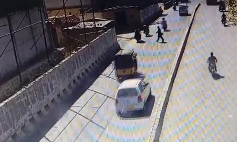 - ^ The explosive-laden vehicle driving along the Pishin Stop road is seen turning into a driveway/road moments before detonating.
