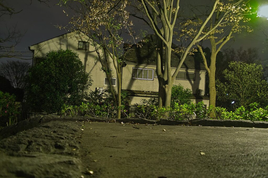 Miyazawa family house at night seen from Soshigaya Park (photographed in December 2011)