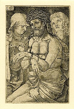Beginning in the 13th century, European art would break with Christian tradition of hiding Jesus’s genitalia using clothing and composition, instead depicting Christ with a visible or even physically erect phallus.[11] This “display of the genitals” was coined in art scholarship as the ostentatio genitalium, mirroring the ostentatio vulnerum, or “display of the wounds“, during the Passion.[12]