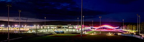 The stadium hosted “Northern Kickoff“, a June 13, 2015 season-opening exhibition game between the Canadian Football League teams Edmonton Eskimos and the Saskatchewan Roughriders, the first major sporting event held at the new facility as well as the most northerly outdoor professional football game in history.[2] In a last-minute addition to the 2015 CFL schedule, the Toronto Argonauts hosted a regular season home game against the Eskimos at Shell Place on June 27 of the same year.[3]