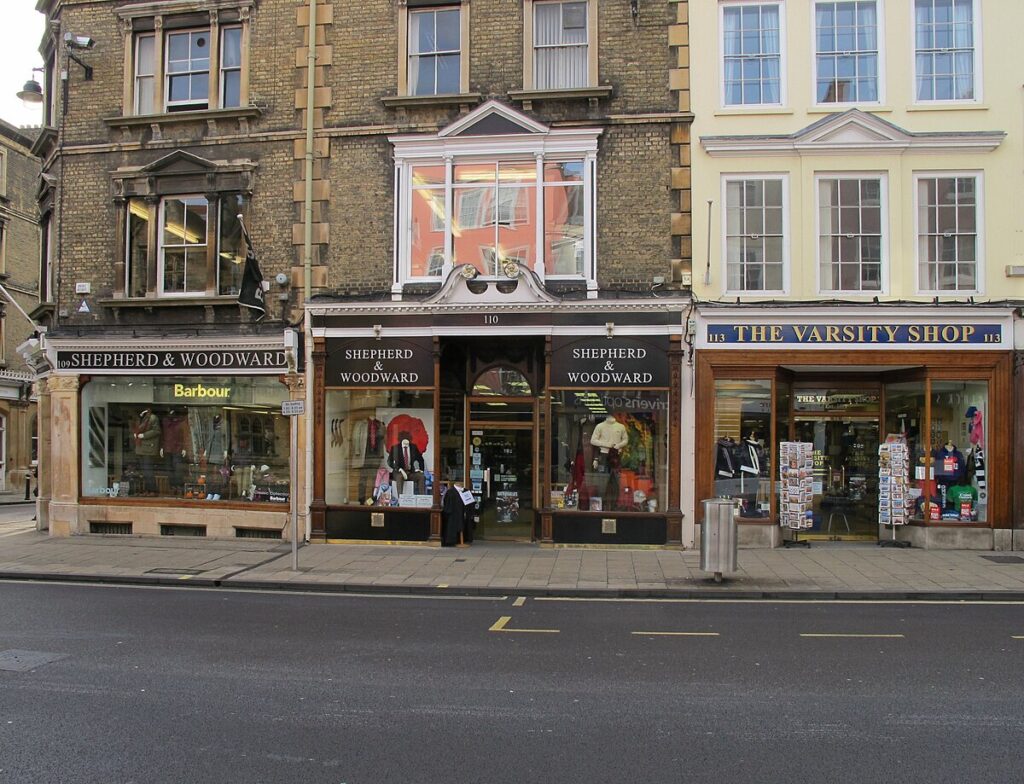[[File:Shepherd and Woodward shops, High Street Oxford – geograph-2694954-by-David-Hawgood.jpg|300px|thumb|Shepherd & Woodward (left and centre); the Varsity Shop (right)]]