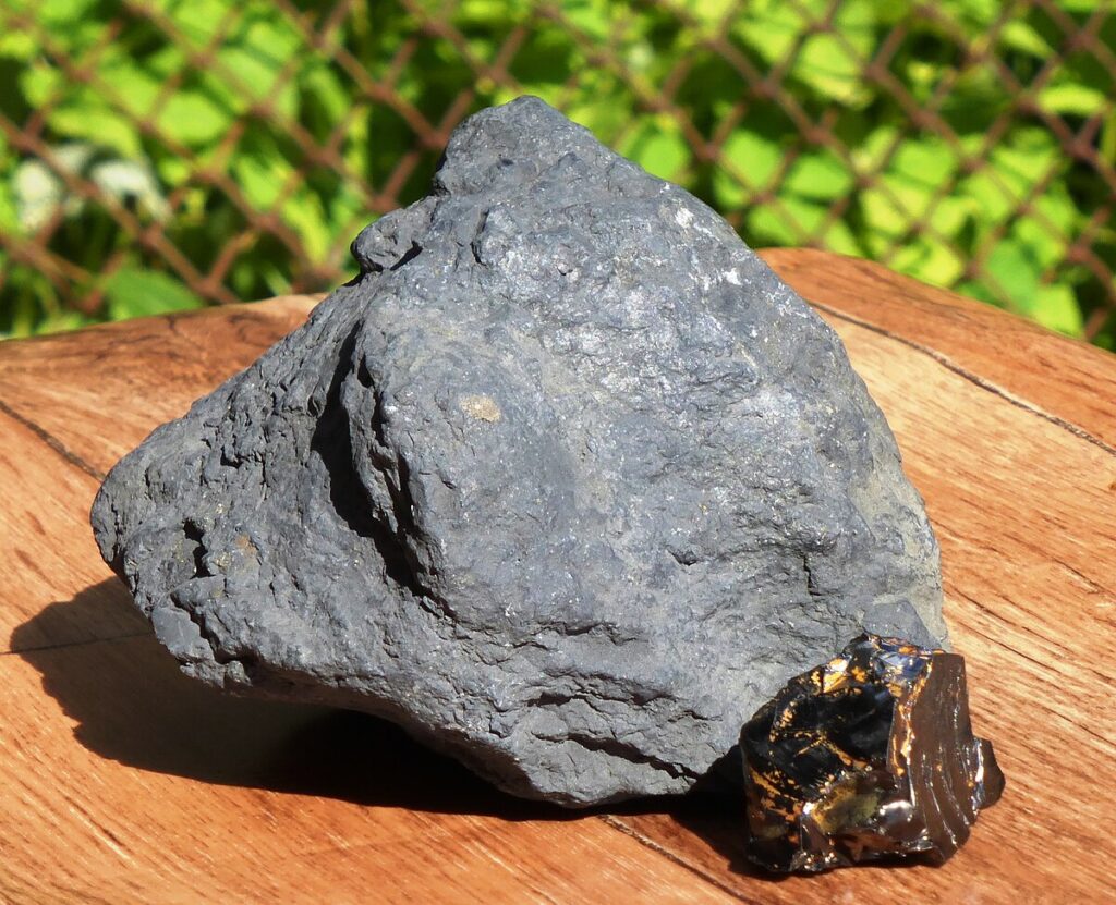 ”’Shungite”’ is either a diverse group of metamorphosed [[Precambrian]] rocks all of which contain [[pyrobitumen]], or the pyrobitumen within those rocks.<ref>{{Citation |last1=Jehlička |first1=J. |title=Transmission Electron Microscopy of Carbonaceous Matter in Precambrian Shungite from Karelia |date=1993 |url=https://doi.org/10.1007/978-3-642-85806-2_4 |work=Bitumens in Ore Deposits |pages=53–60 |editor-last=Parnell |editor-first=John |access-date=2023-12-17 |series=Special Publication of the Society for Geology Applied to Mineral Deposits |place=Berlin, Heidelberg |publisher=Springer |language=en |doi=10.1007/978-3-642-85806-2_4 |isbn=978-3-642-85806-2 |last2=Rouzaud |first2=J.-N. |editor2-last=Kucha |editor2-first=Henryk |editor3-last=Landais |editor3-first=P.|url-access=subscription }}</ref> It was first described from a deposit near [[Shunga (Karelia)|Shunga village]], in [[Republic of Karelia|Karelia]], Russia, from where it gets its name. Shungite is most widely known for [[Crystal healing|pseudoscientific]] and medical claims about its uses in medicine and technology, where it is claimed to have properties ranging from nebulous health benefits to [[5G misinformation|blocking 5G radiation]].<ref name=”:0″ /><ref name=”:1″ /><ref name=”:2″ /><ref name=”:3″ /><ref name=”:4″ />