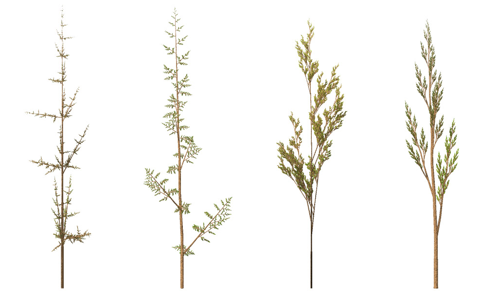 A challenge for plant simulations is to consistently integrate environmental factors, such as surrounding plants, obstructions, water and mineral availability, and lighting conditions.
