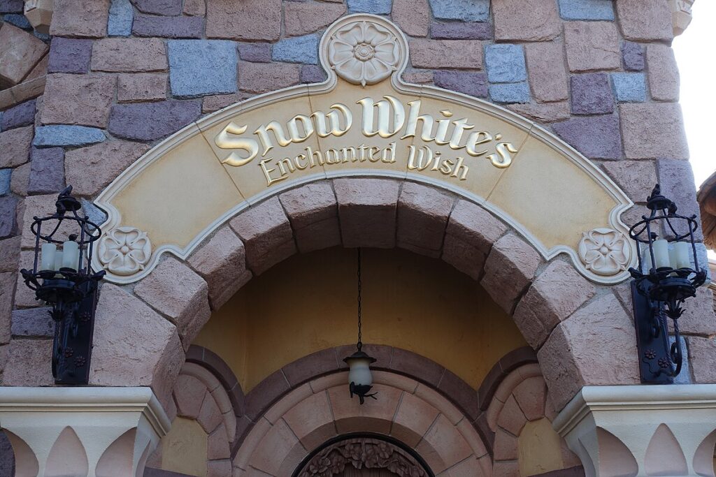 Snow White’s Enchanted Wish is a classic dark ride attraction at Disneyland, Tokyo Disneyland, Disneyland Park (Paris) and formerly at the Magic Kingdom. Located in Fantasyland, it is one of the few remaining attractions that was operational on Disneyland’s opening day in 1955, although it has seen several different redesigns over its history. The ride’s story is based on Disney‘s 1937 film, Snow White and the Seven Dwarfs, their first animated feature film and features the voices of Ginny Tyler as the Evil Queen and Jimmy MacDonald as Doc.