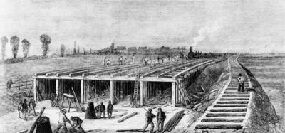By 1859, the Metropolitan Board of Works had been set up and taken over the work of the Metropolitan Commission of Sewers. The Board issued tenders for the construction works and the contract for the Southern outfall was let to Rowland Brotherhood.[1]