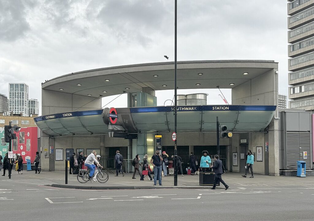”’Southwark”’ ({{IPAc-en|ˈ|s|ʌ|ð|ər|k}}) is a [[London Underground]] station in the [[London Borough of Southwark]] at the corner of [[Blackfriars Road]] and [[The Cut, London|The Cut]]. It is on the [[Jubilee line]] between [[Waterloo tube station|Waterloo]] and [[London Bridge station|London Bridge]] stations, and is located in [[London fare zone 1]].<ref>{{Cite web |last=Transport for London {{!}} Every Journey Matters |title=Southwark Underground Station |url=https://tfl.gov.uk/hub/stop/940GZZLUSWK/southwark-underground-station |archive-url=http://web.archive.org/web/20250424062209/https://tfl.gov.uk/hub/stop/940GZZLUSWK/southwark-underground-station |archive-date=2025-04-24 |access-date=2025-08-02 |website=Transport for London |language=en-GB}}</ref> The station was opened on 20 November 1999 as part of the [[Jubilee Line Extension]]. It is [[Grade II listed building|Grade II listed]].