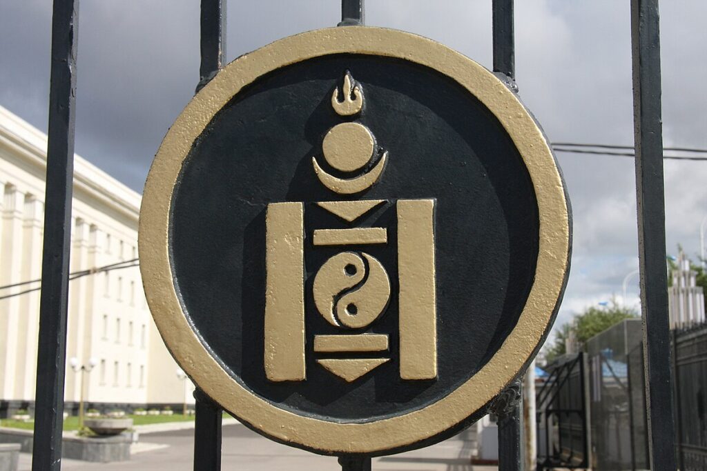 [[File:GovPalaceSoyombo.jpg|thumb|right|300px|”Soyombo” symbol on the gate of the [[Government Palace (Mongolia)|Government Palace]] in [[Ulaanbaatar]]]] |
