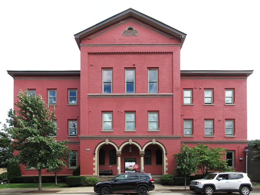 In 1893, one of Pittsburgh’s first kindergartens opened at the Springfield School.[7] It was also one of the first Pittsburgh schools to adopt the sloyd manual training curriculum popularized in Sweden, with classes beginning in 1894.[8] In 1911, the local Council of Jewish Women inaugurated Pittsburgh’s first “penny lunch” program at the Springfield School, providing hot lunches for a price of one cent per item, which was affordable for low-income students.[9] After the success of this program, Pittsburgh Public Schools rolled out district-wide school lunches beginning in 1914.[10][11] The Springfield School also offered night school classes and had its own branch of the Carnegie Library.[5]