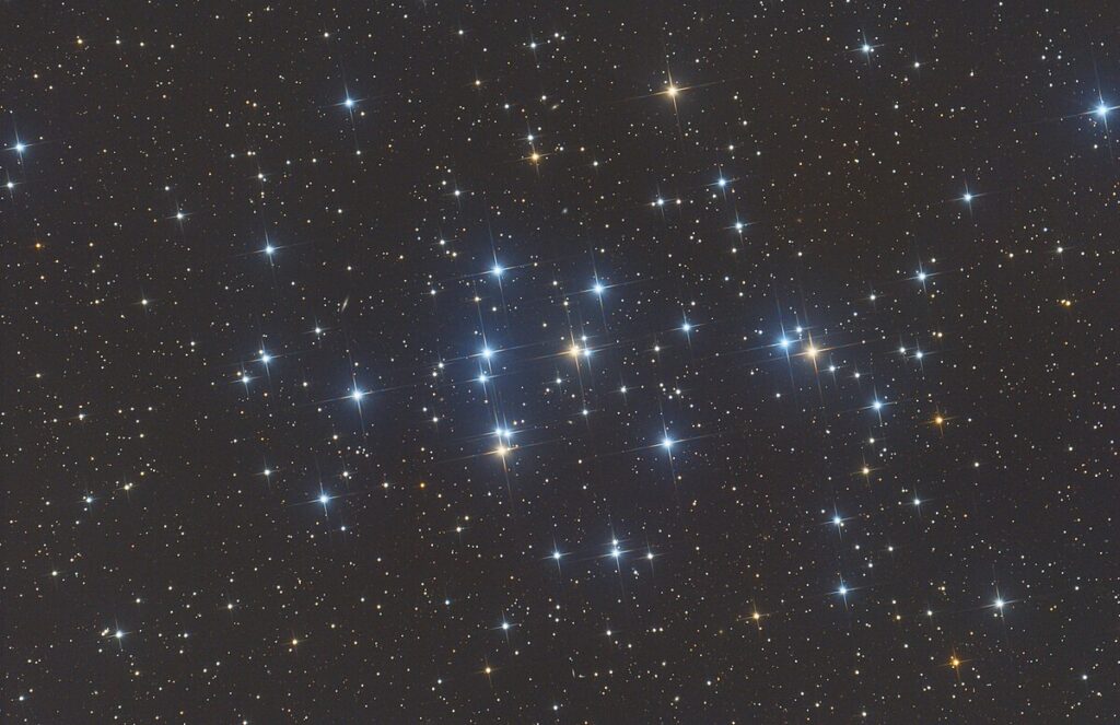 [[File:M44 47x300s-10°C O30 G0 PM RGB 03032022.jpg|thumb|upright=1.4|[[Messier 44]], a cluster in the [[constellation]] of [[Cancer (constellation)|Cancer]]]]