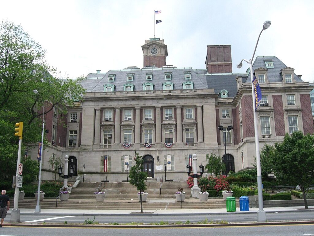 Staten Island Borough Hall is the primary municipal building for the borough of Staten Island in New York City. It is located at 10 Richmond Terrace, next to the Richmond County Courthouse and opposite the St. George Terminal of the Staten Island Ferry. Borough Hall houses the Borough President‘s office, offices of the Departments of Buildings and Transportation, and other civic offices.