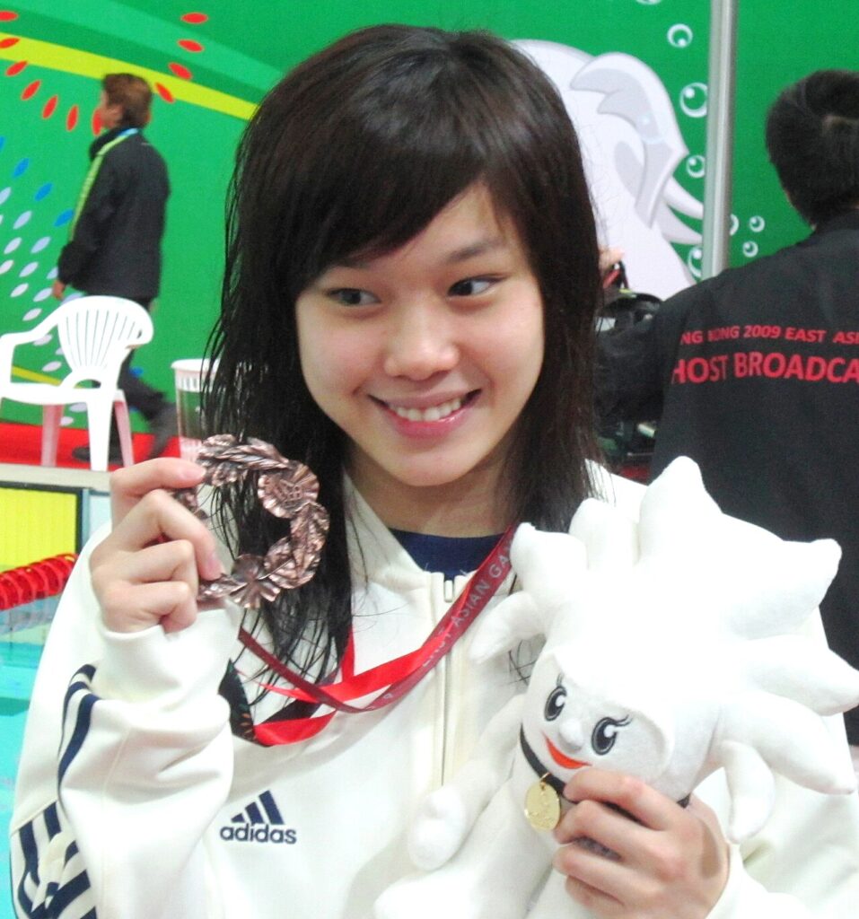 She studied at Sacred Heart Canossian College.,[5] and swam for the University of California, Berkeley, from which she graduated with a degree in environmental economics and policy in 2014.[6] She is also a winner of the 24th Hong Kong Outstanding Students Awards.[7]