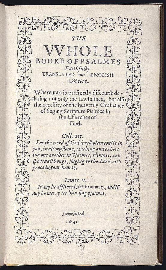 The Whole Booke of Psalmes Faithfully Translated into English Metre, printed by Stephen Daye, Cambridge, Massachusetts, 1640. First book printed in British North America