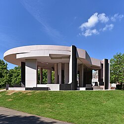 In 2021, Sumayya Vally designed the 20th Serpentine Pavilion, making her the youngest architect to do so in the commission’s history.[18] The forms in the Pavilion are a result of abstracting, superimposing and splicing elements from architectures that vary in scales of intimacy, translating the shapes of London into the Pavilion structure in Kensington Gardens. Where these forms meet, they create a new place for gathering in the Pavilion[19] She was also the only architect named on Times magazine list to be invited to design the Serpentine’s annual temporary summer pavilion on the grounds of Kensington Gardens in London.[3]