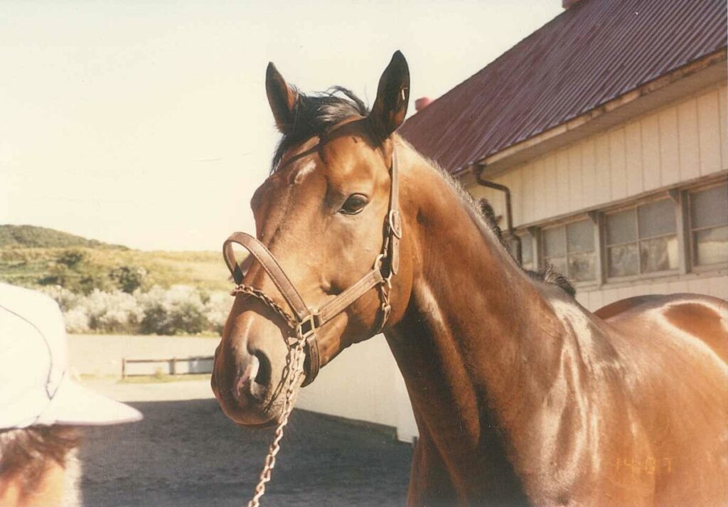 1990 was Super Creek’s 5-year-old season. In early April, Super Creek took victory in the Sankai Ōsaka Hai. In late April, he took victory in the Spring Tenno Sho, making Super Creek the second horse in history to achieve victories in both Tenno Shos, after Tamamo Cross earned both in the same year in 1988. After the Tenno Sho, muscle pain again appeared in Super Creek’s legs, cancelling plans to run him in the Takarazuka Kinen and a possible entry in to the Prix de l’Arc de Triomphe in France.[6] Like in 1989, Super Creek returned to racing at the Kyōto Daishōten, where he once again took victory. Almost immediately after the race, it was discovered that Super Creek had developed laminitis in his left-front leg. Plans to run Super Creek in the autumn Tenno Sho were cancelled and, at the end of the year, Super Creek was retired from racing entirely. Retirement ceremonies were held in January 1991 at both Nakayama Racecourse and at Kyoto Racecourse.