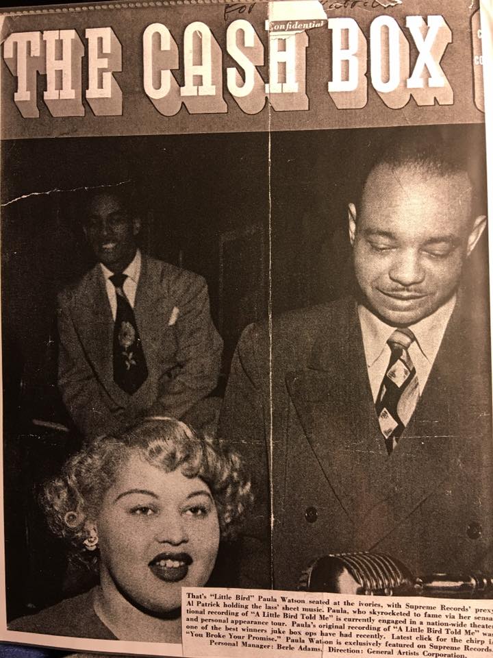 Supreme’s two greatest hits were Paula Watson’s “A Little Bird Told Me“, which sold over a million copies,[3] and Jimmy Witherspoon’s version of “Ain’t Nobody’s Business“, recorded on Albert Patrick’s request, which lasted 34 weeks on Billboard‘s Rhythm & Blues hit list.[4]
