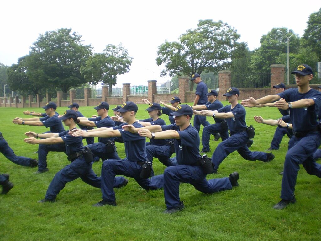 The program is intended to emphasize the principles of fellowship, teamwork, seamanship, and military life and introduce cadets to the Coast Guard core values of honor, respect, and devotion to duty. During the summer, Swabs are both physically and mentally tested. They will run obstacle courses, complete team ropes course challenges, learn basic sailing at the Jacobs Rock Seamanship and Sailing center, and do daily calisthenics, while also learning Coast Guard History, their chain of command, and other information (collectively known as “indoc”). Over the course of the summer, the Swabs are tested repeatedly on indoc through written and oral tests to prepare them for the Boards Indoctrination Exam the following spring, the final test of all the indoc learned over the whole year.