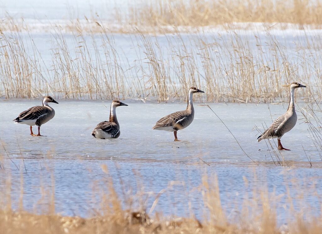 - ^ a b c BirdLife International. (2016). “Anser cygnoid“. IUCN Red List of Threatened Species. 2016: e.T22679869A228564177. doi:10.2305/IUCN.UK.2016-3.RLTS.T22679869A228564177.en.