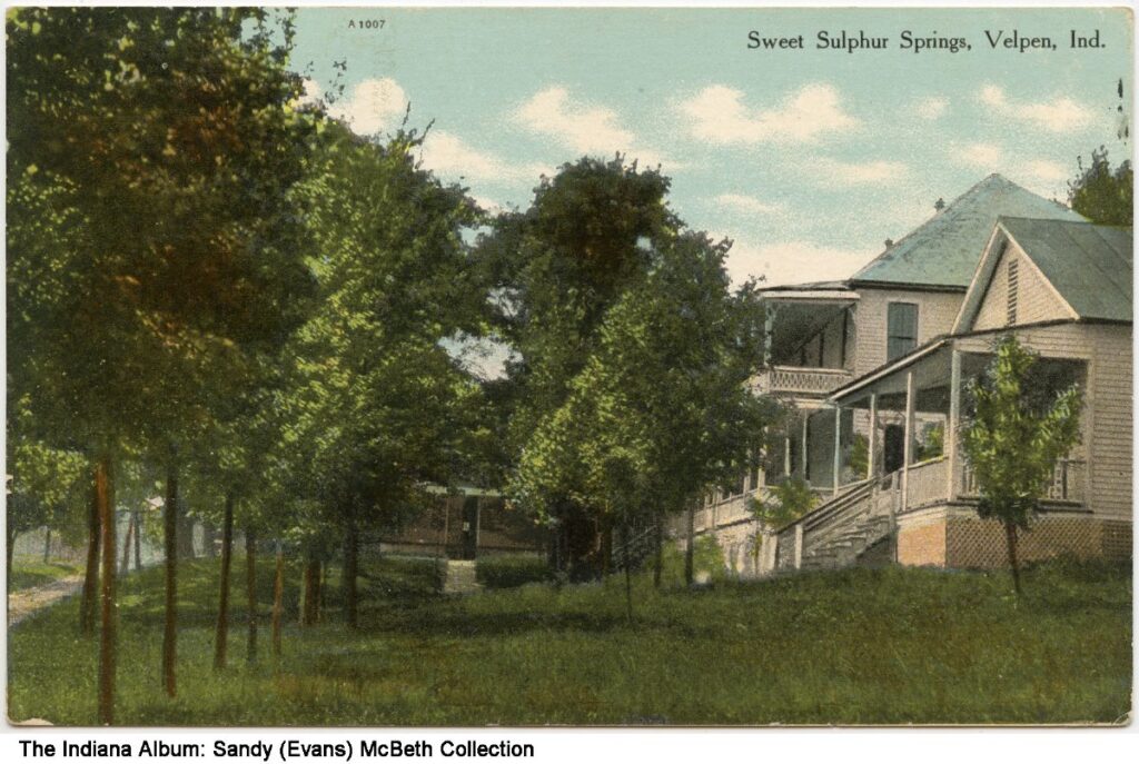 ”’Sweet Sulphur Springs”’, previously known as White Sulphur Springs,<ref>{{Cite web |last=Dillon |first=Carrol F. |title=Fidelity |url=http://ingenweb.org/inpike/Jeffcit.htm |url-status=live |archive-url=https://web.archive.org/web/20100904165917/http://ingenweb.org/inpike/Jeffcit.htm |archive-date=September 4, 2010 |access-date=November 6, 2025 |website=ingenweb.org}}</ref> was a popular health resort and hotel near [[Velpen, Indiana|Veplen, Indiana]] operating from the 1890s to 1914, renowned for the supposed medicinal properties of the springs the hotel was located near.<ref name=”:5″>{{Cite news |date=September 6, 1925 |title=Will Build Big Resort Hotel At Velpen, Ind. |url=https://www.newspapers.com/article/evansville-courier-and-press/184467379/ |access-date=November 6, 2025 |work=[[Evansville Courier and Press]] |pages=18}}</ref> Many of its visitors came from neighboring cities Louisville, St. Louis and Evansville.<ref name=”:1″>{{Cite book |last=Blatchley |first=Willis Stanley |author-link=Willis Blatchley |url=https://scholarworks.iu.edu/iuswrrest/api/core/bitstreams/a81406b6-5224-48e1-b01a-802476bef085/content |title=The Mineral Waters of Indiana |date=1903 |publisher=W.B. Burford |location=Indianapolis |language=en-US}}</ref>