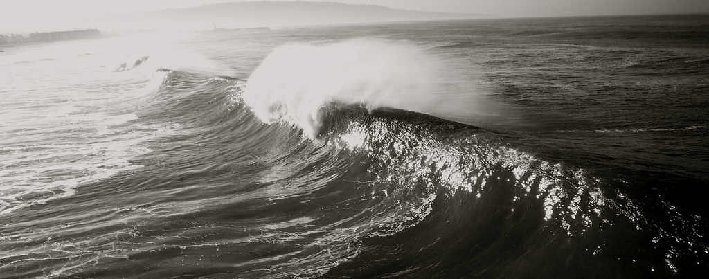 This is because each small breaking wave gives a small push to the longer wave on which it is breaking. From the point of view of the long wave, it is receiving a small push on each of its crests just like a swing being given a small push at just the right time. There is also no comparable effect in the wave’s trough – a term which would tend to reduce the size of the long wave.