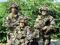 The current photo showing the uniform off isn’t that great. I’ll find a pic that is in the public domain (one that shows off the patter n better- the one shown just looks like another green uniform) I’ll put it in. Shadowrun 11:18, 20 December 2006 (UTC)
