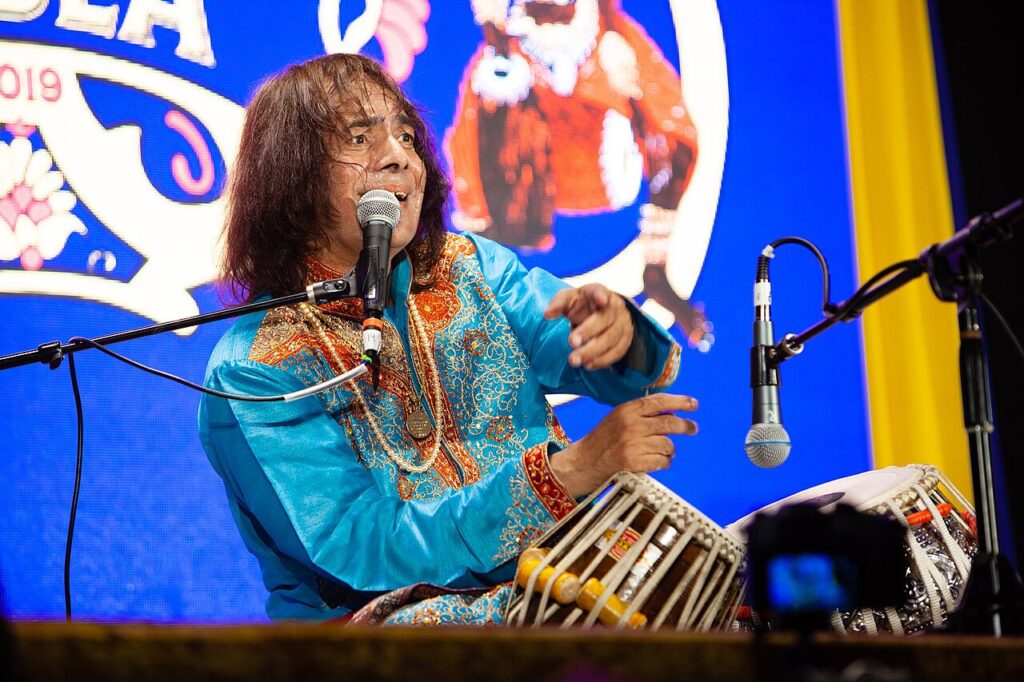 Ustad Tari playing at the Festival of Tabla in 2019.
