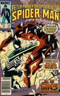 1. ^ This arc was published during the time that the series’ title had been changed to include “Peter Parker,…”, issues #49 (December 1980) – #132 (November 1987). “Spectacular Spider-Man, The (1976 Series)”. Grand Comics Database Project. Retrieved 2009-05-03.