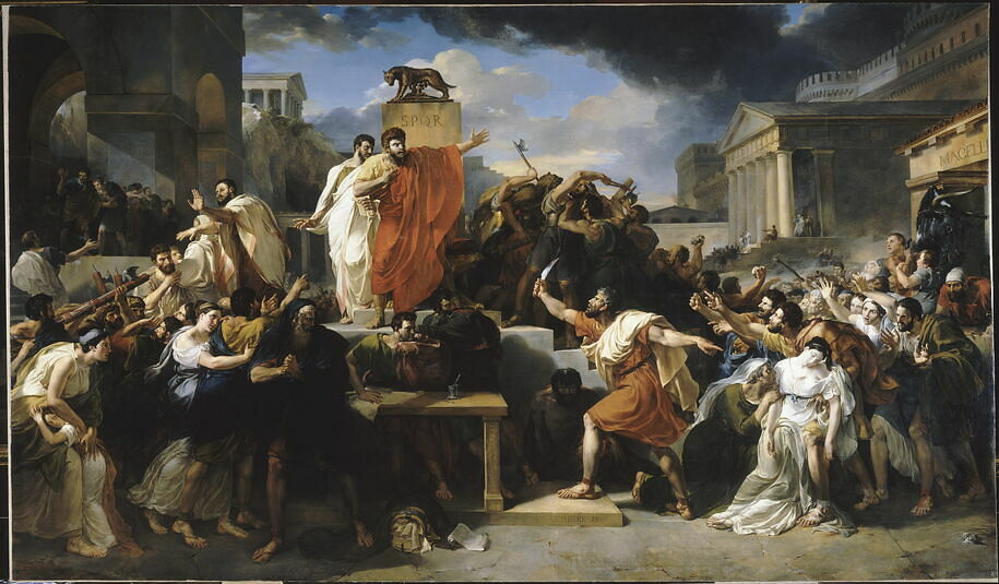 The Death of Virginia (French: La Mort de Virginie) is an 1828 neoclassical history painting by the French artist Guillaume Guillon-Lethière. [1] Set during the Roman Republic. It depicts the death of Verginia, in the Roman Forum during the 5th century BC. The painting is based on the writings of the later Roman historian Livy in his History of Rome .