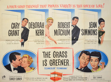 The Grass Is Greener is a 1960 British romantic comedy film directed by Stanley Donen and starring Cary Grant, Deborah Kerr, Robert Mitchum and Jean Simmons. The screenplay was adapted by Hugh Williams and Margaret Vyner from the 1956 play they had written and found success with in London’s West End.