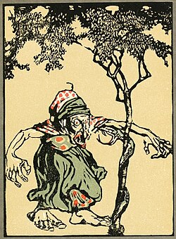 According to Christine Goldberg, some variants of the type show as a closing episode “The Magic Flight” sequence, a combination that appears “sporadically in Europe”, but “traditionally in Turkey”.[13] As their final transformation to deceive the ogress mother, the princess becomes a tree and her supernatural husband becomes a snake coiled around it.[14]