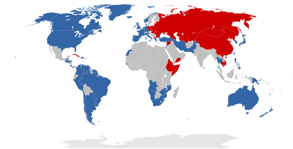 The political thinkers and leaders of third-worldism argued that the north–south divisions and conflicts were of primary political importance compared to the East–West opposition of the Cold War period. In the three-world model, the countries of the First World were the ones allied to the United States. The Second World designation referred to the former industrial socialist states under the influence of the Soviet Union. The Third World hence defined countries that remained non-aligned with either NATO, or the Communist Bloc. The Third World was normally seen to include many countries with colonial pasts in Africa, Latin America, Oceania and Asia. It was also sometimes taken as synonymous with countries in the Non-Aligned Movement, connected to the world economic division as “periphery” countries in the world system that is dominated by the “core” countries.[1]