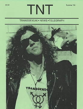 Transsexual News Telegraph was a quarterly news and topics magazine published in United States from 1991 to 2002. TNT covers often portrayed Trans Identities or Art and the back covers were usually a piece of graphic art with a thought provoking theme.