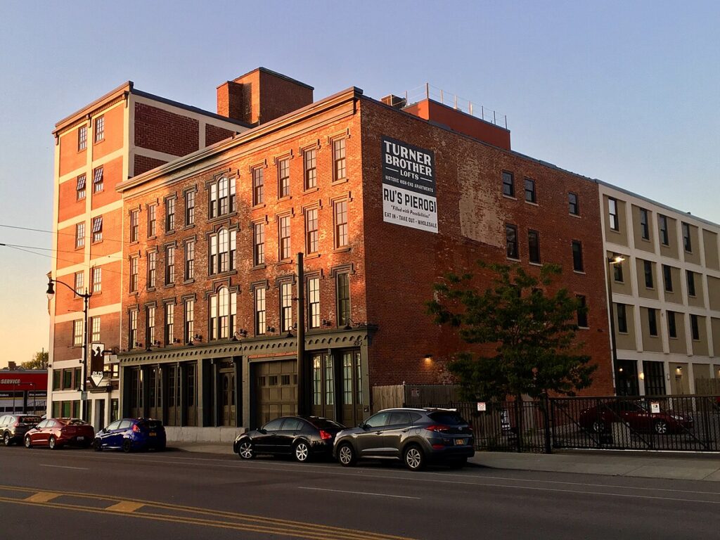 ”’Turner Brothers’ Building–American Household Storage Company”’ is a historic manufacturing and [[warehouse]] building located at [[Buffalo, New York|Buffalo]] in [[Erie County, New York]]. The original section was built about 1848, and it is a four-story, wood frame, brick faced building in the [[Gothic Revival architecture|Gothic Revival]] style. A six-story, two bay [[reinforced concrete]] addition was built in 1910. The building has three-story rear additions built in 1889 and 1940.<ref>{{ catalog |New York SP Turner Brothers’ Building–American Household Storage Company October , 2025</ref>