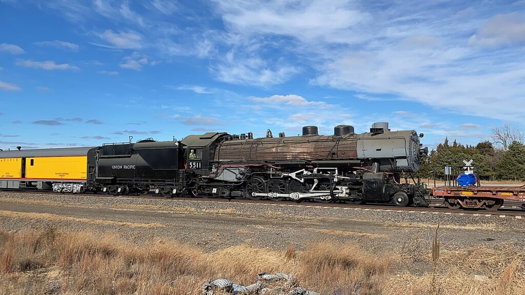 Union Pacific 5511 is a 2-10-2 “Santa Fe” type steam locomotive built by the Baldwin Locomotive Works in September 1923 as part of the Union Pacific Railroad‘s TTT-6 class. While other railroads referred to this wheel arrangement as the “Santa Fe” type, Union Pacific simply categorized it by its wheel configuration—2-10-2—and class. It is the last surviving 2-10-2 of 144 units operated by the UP from 1917 to the end of steam in 1959, and the only complete UP steam locomotive equipped with Young valve gear.