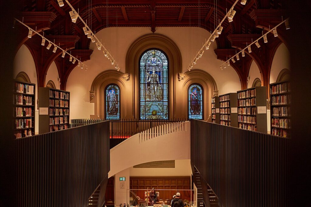 The renovation took place during the early 2020s and restored several parts of the University College building. Notably, it relocated the library to its original home in the east hall.[5] The new library retained the Romanesque Revival style architecture of the building, featuring vaulted ceilings, stained glass, and gargoyles.[6]